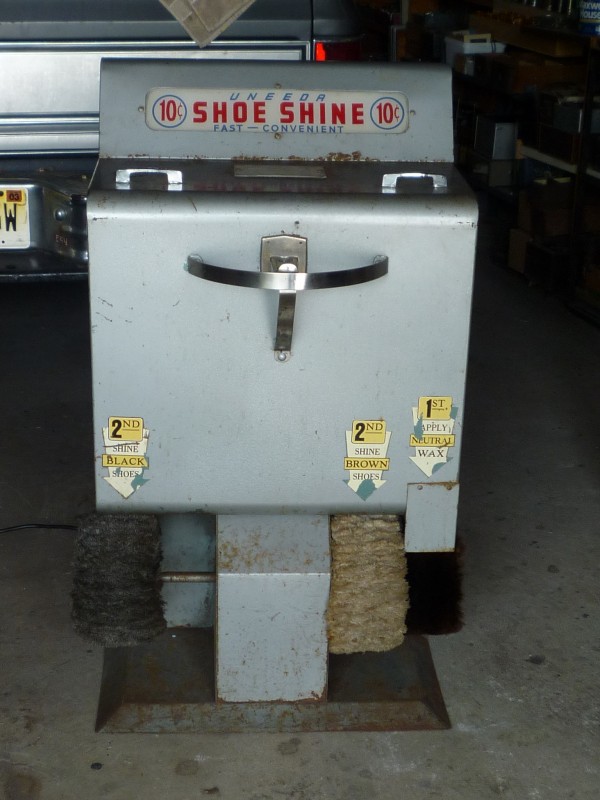 1950’s Coin Operated Shoe Shine Machine “U need a shoe shine”,shoe shine machine…. . {Say that three times fast!} Coin operated,works well. You will never leave the house again with those dull shoes!Would make a nice addition to a den,man cave, office or anywhere.