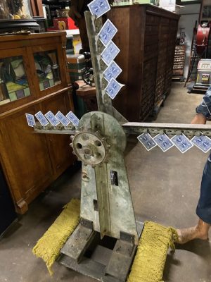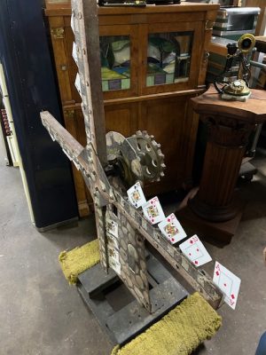 Wonderful old antique amusement park chain driven cast iron shooting gallery Windmill Target in as found condition. Perfect condition, looking as though it may have never been used. Old style 22 short target that would have been part of a complete shooting gallery with various other animated targets chain and motor driven. I’ll bet you won’t find another as nice as this one.
